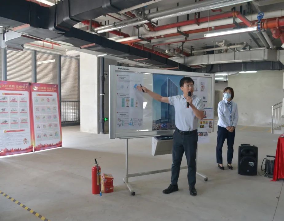 随后,中电迪富大厦管理处主任兰品杰向大家介绍了迪富大厦的结构,以及避难层的位置和逃生时的注意事项。