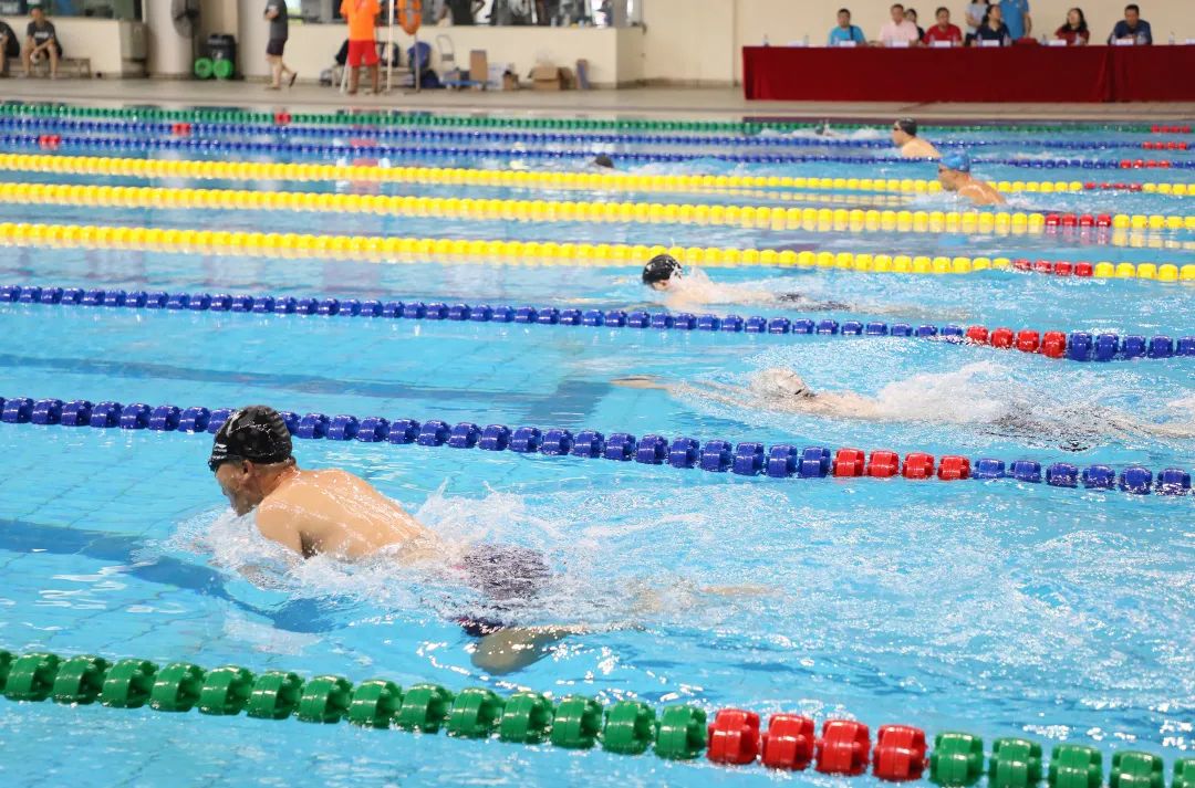 首先进行的是女子50米蛙泳项目,赛场内腾蛟起凤,健儿击水追波逐浪;随后的男子50米蛙泳及自由泳项目中,运动员展现出矫健的身姿和高超的泳技;最后的接力赛更是高潮迭起,游泳健将们凭借矫健的泳姿、强健的体魄,在水中劈波斩浪、奋勇争先,上演了一场精彩绝伦的水上追逐战,赢得了现场观众阵阵掌声与欢呼,充分展现了中电信息锐意创新、“泳”往直前的奋斗精神。